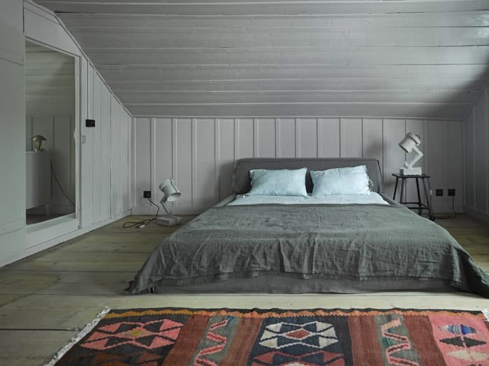 Pour apporter de la modernité à une chambre à des couleurs claires, que ce soit pour le parquet ou le linge de lit ;