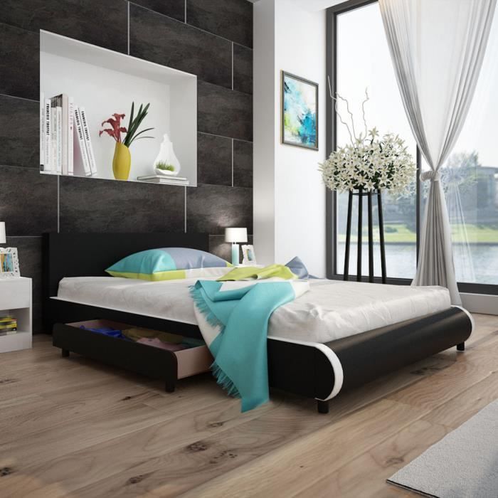 Lit En Cuir Synthetique Noir 140 X 200 Cm Avec 2 Tiroirs De Rangement Design Moderne Pour Chambre A Coucher Achat Vente Lit Combine Lit En Cuir Synthetique Noir Cdiscount from www.cdiscount.com Chambre complète moderne aménagée dressing revêtement laqué gris anthracite et blanc brillant et élairage de façade led's. Pour la décoration de votre chambre à coucher , découvrez la sélection de mobilier design de la villadici. Meubles chambre à coucher contemporaine.